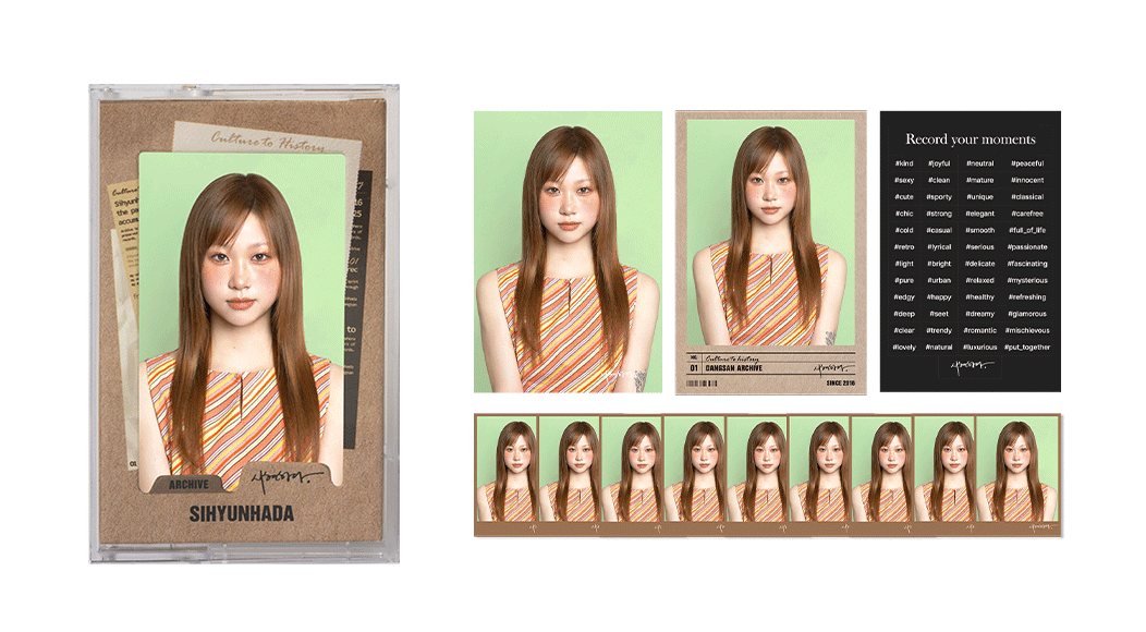‘순간을 기록하다’ 라는 슬로건에 맞게, 모든 기록을 아카이빙하는 데에 의의를 두어 테이프 형식으로 디자인한 시현하다 만의 아이덴티티를 녹인 패키지입니다.