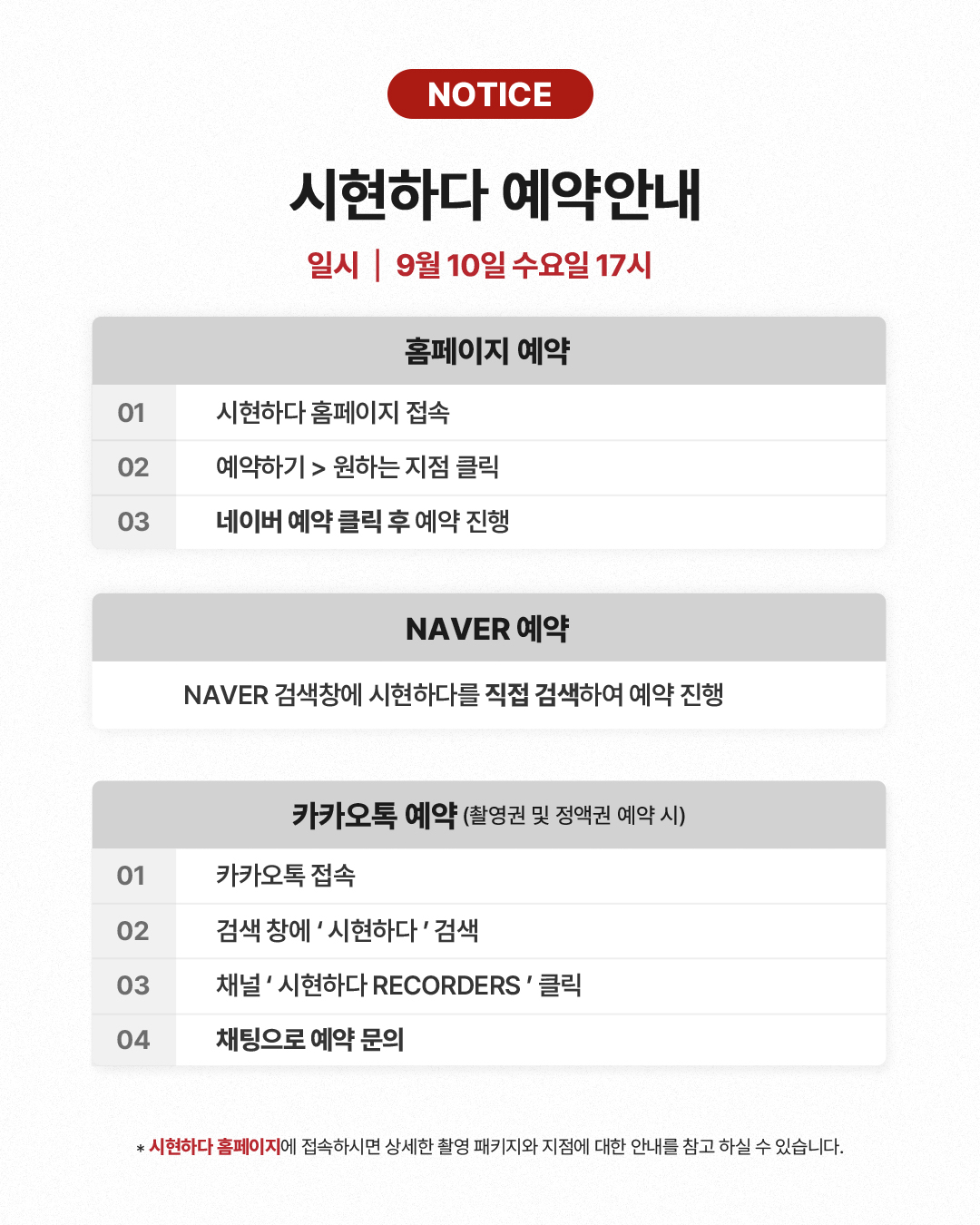 시현하다 초상&프리미엄 예약 안내 (10월 & 11월)