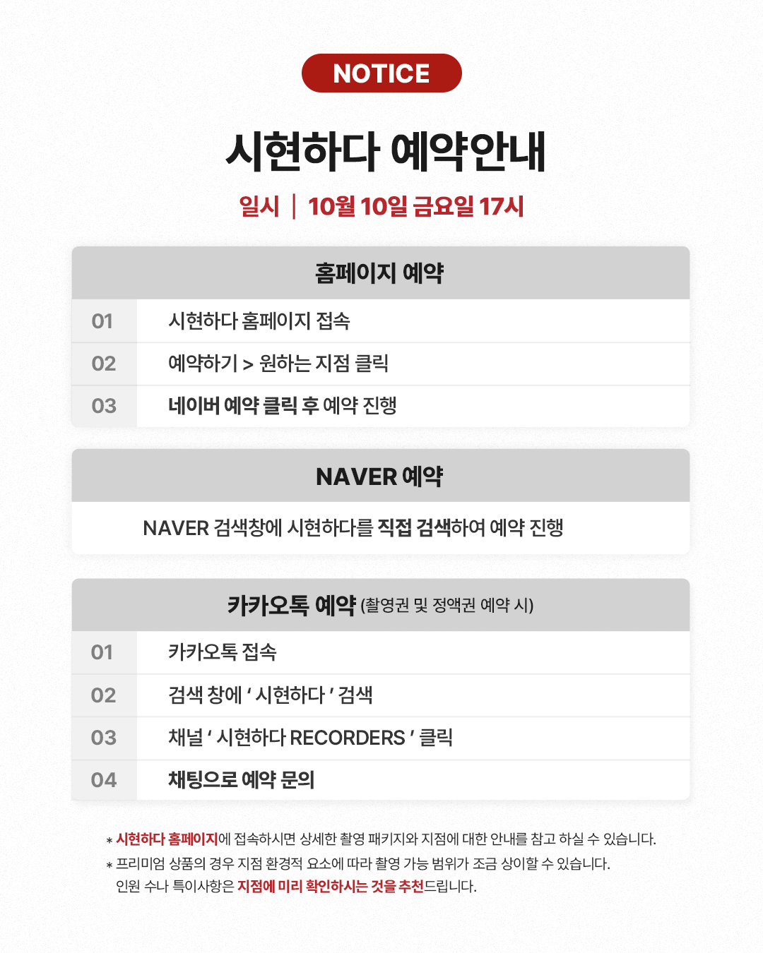 시현하다 초상&프리미엄 예약 안내 (11월&12월)